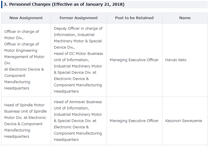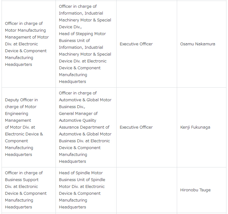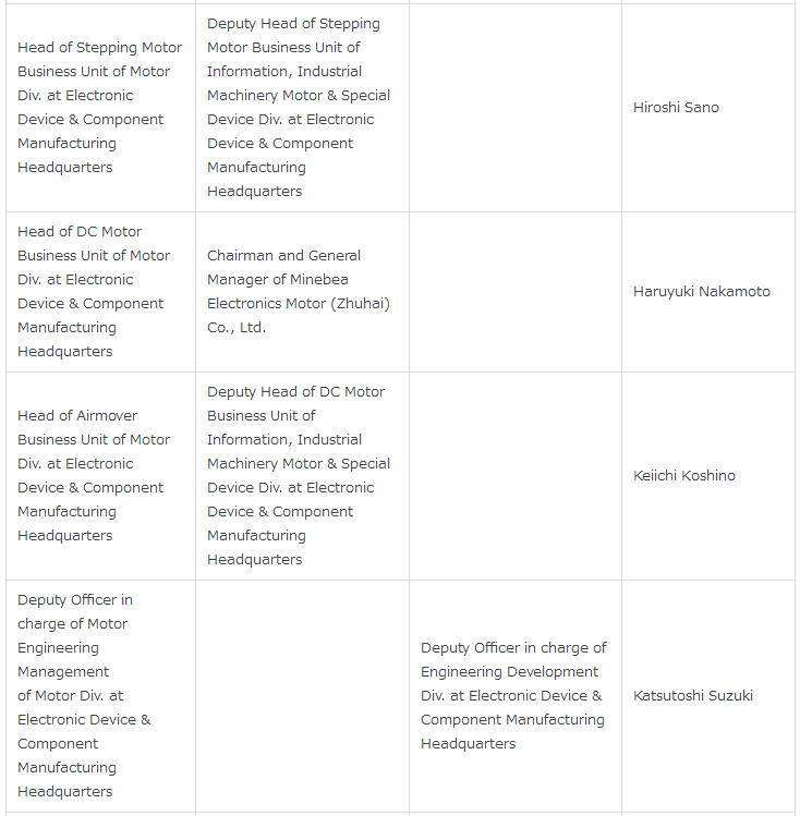 ③ Motor Division will be organized into 3 Business Units and 3 Departments, namely, Stepping Motor Business Unit, DC Motor Business Unit, Airmover Business Unit, Košice Manufacturing Department, Quality Control Department, Motor Business Management Department by Motor Manufacturing Management and will be organized into 4 Departments, namely, Stepping Motor Engineering Management Department, DC Motor Engineering Management Department, Airmover Engineering Management Department, PMDM Engineering Management Department by Motor Engineering Management.