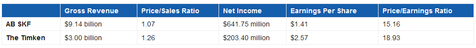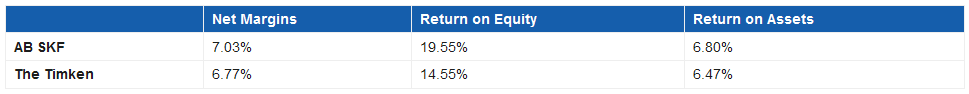 This table compares AB SKF and The Timken’s net margins, return on equity and return on assets.