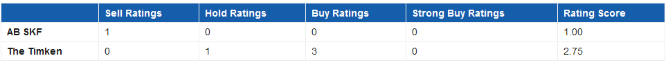This is a breakdown of recent recommendations for AB SKF and The Timken, as reported by MarketBeat.